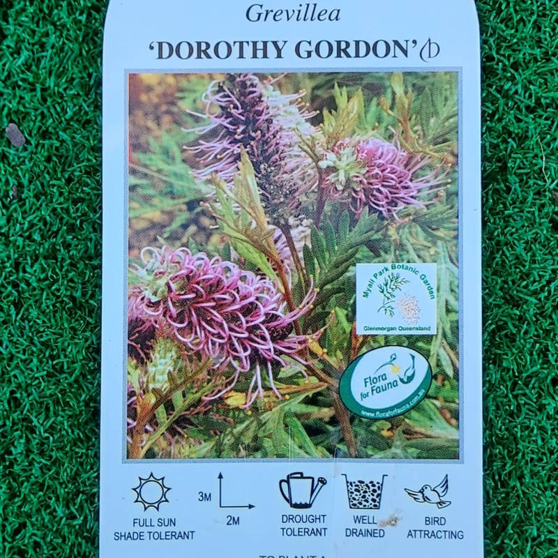 The Grevillea Dorothy Gordon lends an exotic, vibrant touch to any garden, captivating onlookers with its distinct, year-round blooms.