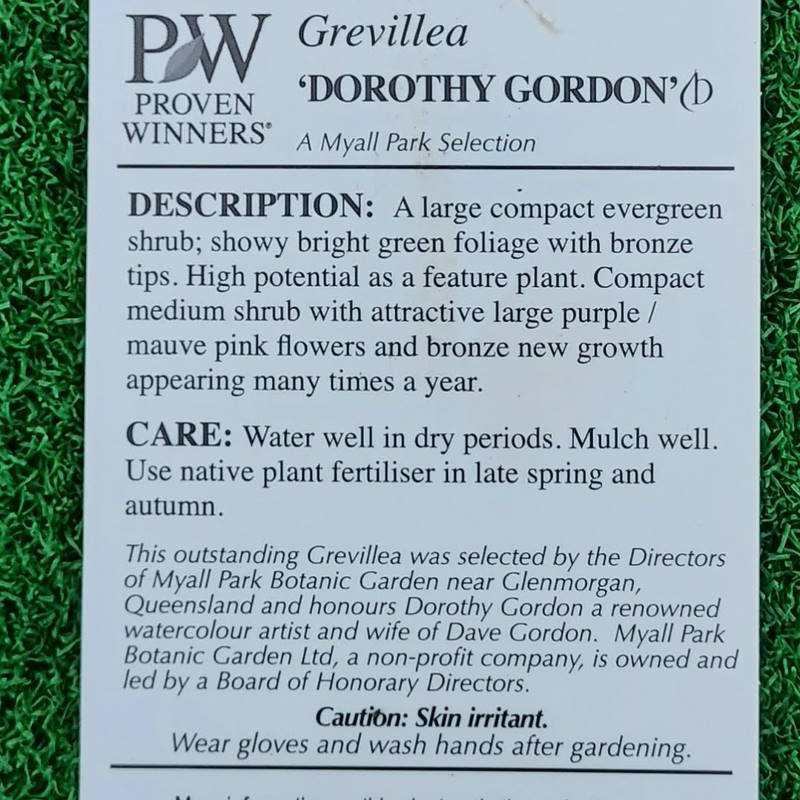 Grevillea Dorothy Gordon is an exquisite Australian native shrub, celebrated for its large, purple-blue inflorescences that stand out against its dark green, divided foliage. This hardy plant flourishes in well-drained soils and is remarkably drought-tolerant, making it an ideal choice for low-maintenance gardens. It serves as a magnet for wildlife, especially nectar-loving birds and bees.